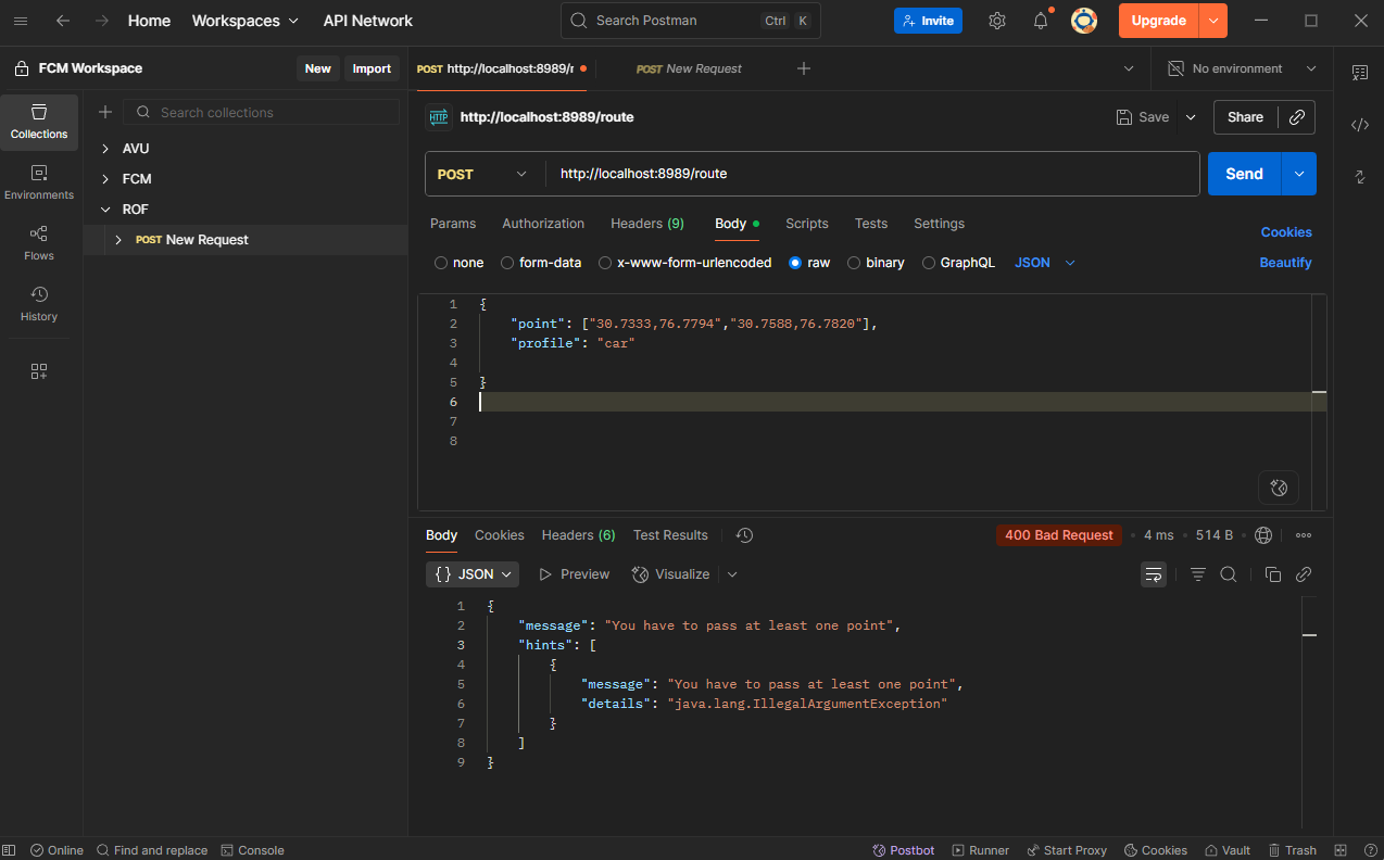 You need to use the points (not point) parameter and it has to be a nested array of [lon, lat] coordinates, not a flat array like you tried.