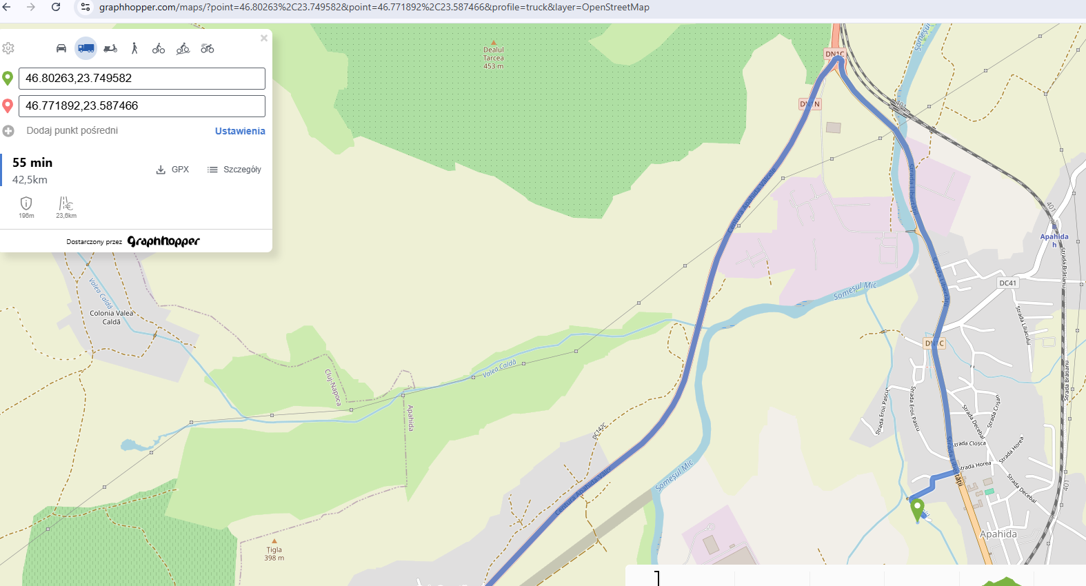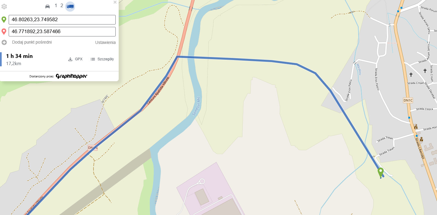 while the same coordinates on graphhopper.com/maps follow the correct nearby road